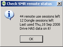 Selecting the "Check status of EEGer remote use drive" option allows the clinician to display the status of a remote drive in a message box like this: