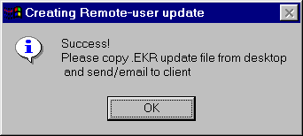 The clinician will discover a file named remotedonglenumber_yymmddhhmm.EKR (where remotedonglenumber is the user's dongle number and the yy... number makes for uniqueness) on the computer desktop. The filename thus does NOT contain any client-identifying data although the internal contents of the .EKR file does (client name and birthdate). Please observe HIPAA rules. This file is designed to be transferable over email and is read and verified by EEGer itself.
