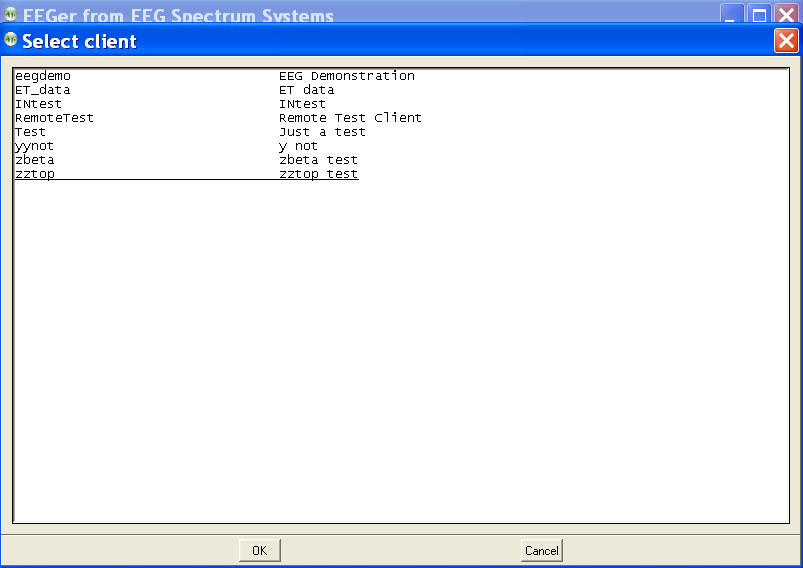 Selecting Initialize EEGer remote use storage device brings up a client selection window.