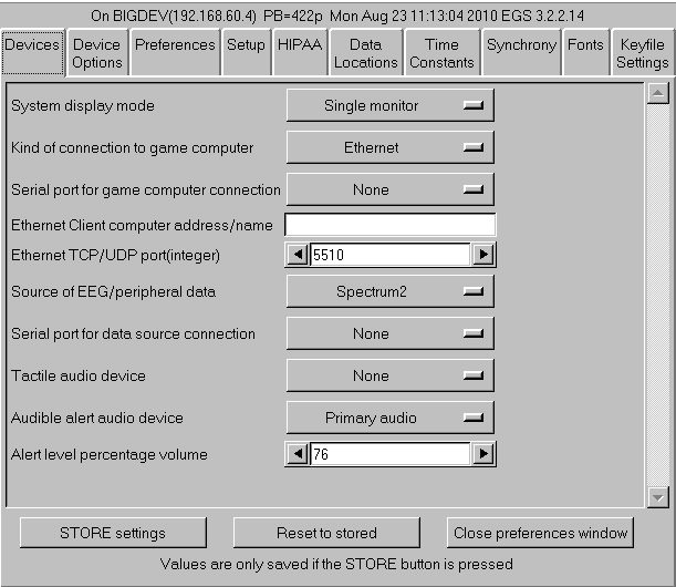 "System display mode" selects the mode of operations of the user interface. Changing this option makes EEGer exit since the value changes the kind of initialization needed. A special keyfile is required to select 2-computer or Dual-monitor operation.