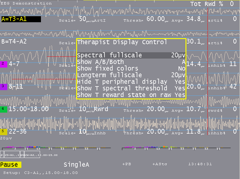 - The "Spectral fullscale" setting controls the fullscale setting of the Therapist Spectral Mirror display.