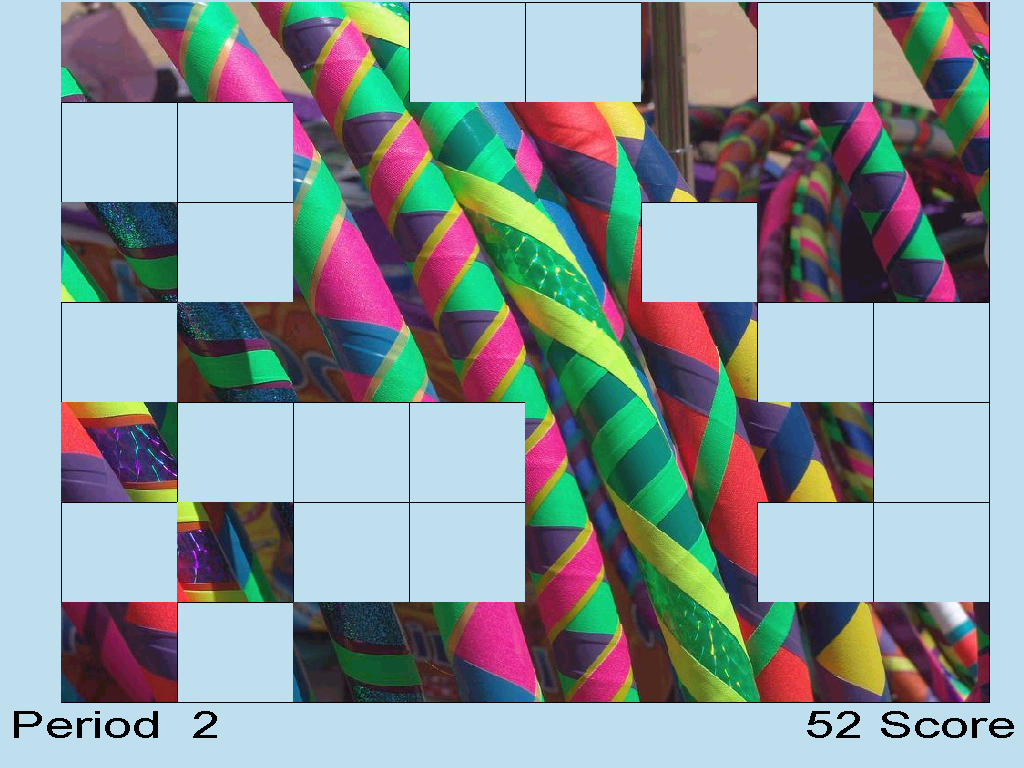 4mation is an image display game where each reward displays another grid in the image. Options are tailorable for grid sizing (x and y dimensions), grid selection (ordered, random, weighted), sounds played on reward, a success sound on filling all the grids, user selection of image directories, etc. A special key option on the game computer (Alt-D) can be used to cycle through the pictures during the time that the credits are shown on the screen (i.e. before pressing F5 for the first time). User pictures can be either .BMP or JPEG files. Note that many cameras provide files with .JPG extensions that are NOT JPEG files but EXIF files - an attempt is made to translate these also.