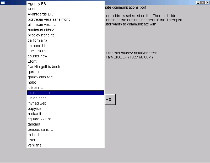 Also, the font used for EGS games can be elected here (for 2-computer setups). Clicking on the font selection window brings up a selection choice list similar to this: