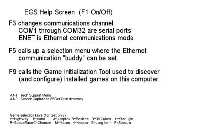 The main menu program monitors communication with the Therapist computer and responds accordingly by dispatching whichever feedback/support program is commanded by the Therapist computer. F1 brings up/drops a help menu display. Alt-T may be used to bring up a tech support menu used to simplify customer support.