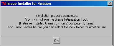 Then the files will be copied from the source you specified to the destination you specified. The utility will update the game definition file for 4mation to include the new folder.
