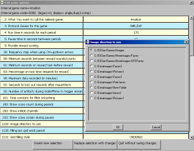 l Select the image source you want to use by clicking the radio button next to the pathname. (The default is c:\EEGer\Games\Images).